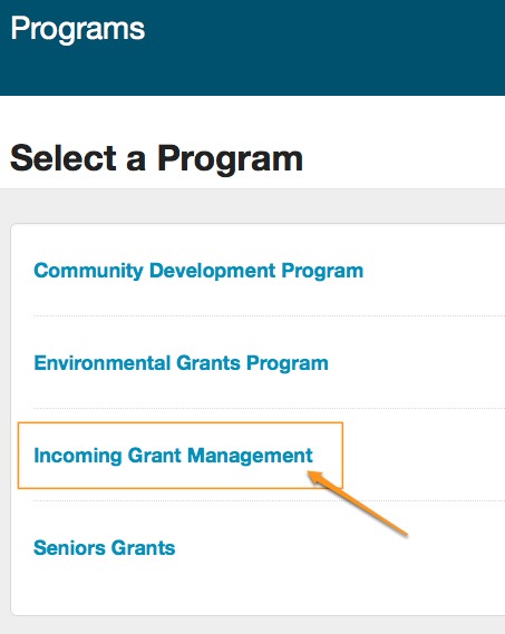 - Click on the 'Incoming Grant Management' program